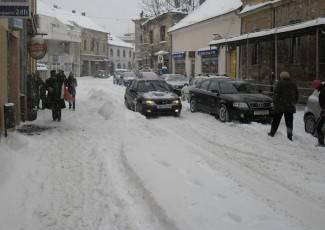 Snijeg je jutros zatrpao gradske ulice u Pakracu