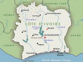 Obala Bjelokosti na karti