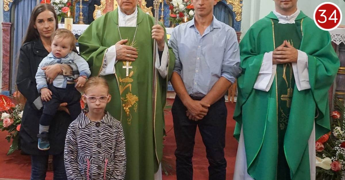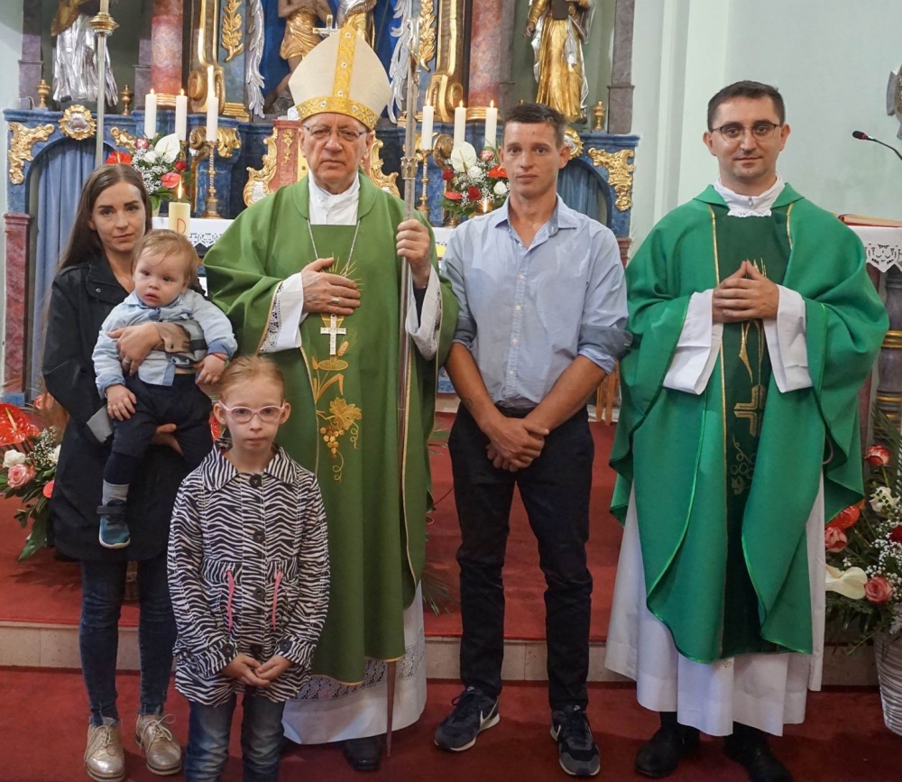 Nakon popričesne molitve sudionici su slavlja, predvođeni biskupom Antunom uputili Bogu Molitvu za Požešku biskupiju. Na svršetku pak svete mise biskup je roditeljima čestitao na petom opredjeljenju za život, a još više za krsno preporođeno dijete. Ohrabrio ih je neka budu ponosni što su se svrstali na Božju stranu, na stranu života, potaknuvši ih da ih ništa ne pokoleba u njihovu služenju životu, u odgoju djece i poštivanju svega onoga što im je Bog po njima darovao. Nazočnu pak djecu u crkvi i sve odrasle pozvao je da Bogu uvijek budu vjerni, a u odnosu jedni prema drugima besplatno dobri, nastojeći oko plemenitosti i ljubavi, te podupirući jedni druge, osobito obitelji s brojnom djecom. Na obitelj Kmetec Ognjen i na sve nazočne zazvao je Božji blagoslov.