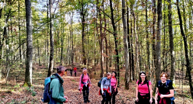 Automobile su ostavili kod restorana na jezeru, a onda su krenuli kružnom šumskom stazom u smjeru planinarske kuće Borovik. Lijep i sunčan jesenski dan vidno je utjecao na raspoloženje naših planinara. Njihovo dobro raspoloženje i zadovoljstvo bilo je vidljivo na svakom koraku, dok su se kretali šumom te uživali u izobilju gljiva i ostalih jesenskih plodova. Na planinarskoj kući Borovik dočekali su ljubazni đakovački planinari, ponudivši im da se odmore i ugriju uz vatru. Poslije dužeg druženja s prijateljima planinarima, nastavili su poučnom stazom oko Jezera Borovik.