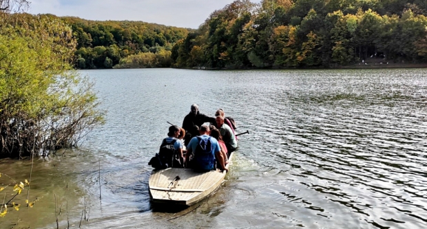 Pred njima su se izmjenjivale livade i šume, dok nisu izašli na obalu jezera koja im je izmamila dah. Osim što ih je obasjalo toplo jesenje sunce, imali su prelijep pogled na jezero. Zbog svega odlučili su ostati i uživati u prekrasnom jesenjem danu. Dugo su uživali dok se nije pojavio lovočuvar s čamcem, koji ih je ljubazno prevezao na suprotnu stranu obale, kako bi značajno uštedjeli na vremenu. Osim toga vožnja čamcem po jezeru, bila je za njih veliko zadovoljstvo i dodatna avantura te su uživali maksimalno.