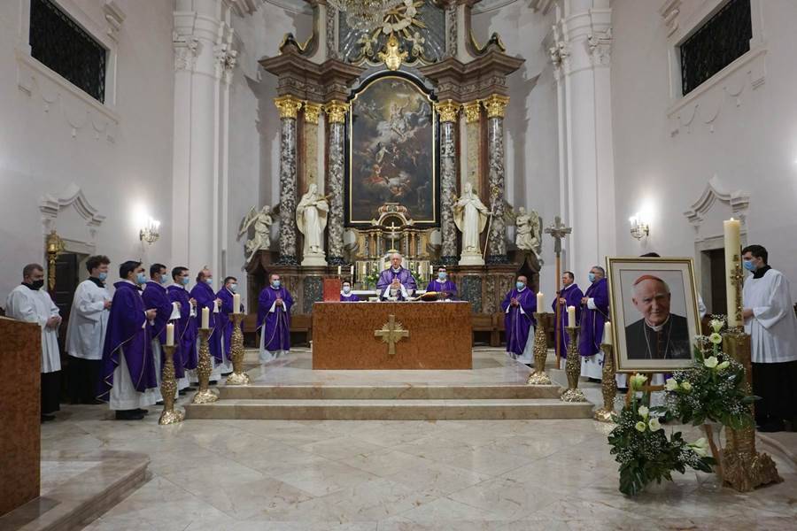 Pozdravljajući nazočne, biskup je podsjetio da je zagrebački nadbiskup, kardinal Franjo Kuharić, preminuo na današnji dan 2002. godine u Zagrebu, bio i naš nadbiskup prije osnutka Požeške biskupije. Kazao je da mu večeras želimo iskazati zahvalnost za sve ono što je u svojoj pastirskoj revnosti učinio za Crkvu i hrvatski narod, te mu u predvečerje Dana Grada iskazati poštovanje i kao požeškom počasnom građaninu. Svi osjećamo koliko je potreban čovjek da bi ovaj grad i naša domovina živjeli one odnose koji tvore grad, domovinu i državu, ustvrdio je biskup. Naglasio je da ti odnosi trebaju biti utemeljeni u Bogu, iz kojega izvire svaki život i njegov smisao. Dok povjeravamo Bogu one koji služe gradu Požegi na čelu s gradonačelnikom i njegovim suradnicima, želimo moliti i za one koji su u njemu tijekom prošlosti obnašali.
