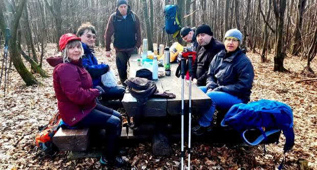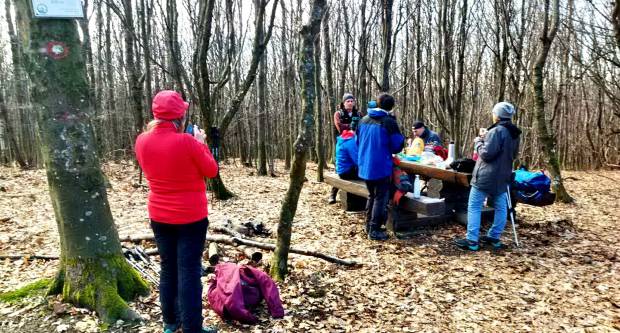 Poslije su se tu pojavile i poznate nam planinarke iz Lipika: Branka Ećimović i Darinka Milmedi, pa je raspoloženje dodatno naraslo. Nakon dužeg odmora i fotografiranja slijedio je brzi spust neobilježenom stazom kroz šumu, tako da su u roku 15-tak minuta izgubili 300-tinjak mnv. Poslije su se ukopčali na šumski put koji ih je vodio bliže polaznoj točki, a onda su nastavili poprijeko šumom kako bi se spustili natrag u Kaptol. Na cilj su stigli obasjani suncem i puni zadovoljnih osmjeha, prošavši punih 17 km po snimci GPS traga.