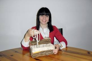 Unutrašnjost kutije obložit ćemo svilenom tkaninom (ostatak zastora). Tkanina neka bude veća od same unutrašnjosti kutije kako bi mogli obložiti i onaj dio (vanjski dio kutije) na kojem nije kora. Počinjemo od samog dana, zatim prelazimo na rubove pa tek na vanjski dio kutije.