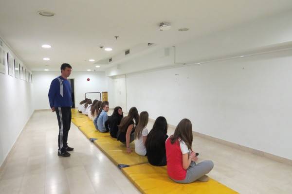 Nastava tjelesnog odgoja se održava ispred atomskog skloništa u podrumu škole.