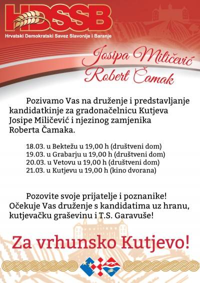 Predizborna utrka ususret prijevremenim izborima u Kutjevu ulazi u posljednja četiri dana. Novim kutjevačkim gradonačelnikom želi biti šest kandidata i kandidatkinja. Tko će u gotovo sigurni drugi krug izbora odlučit će birači u nedjelju. Zbog disperzije glasova na šest kandidata kandidati će se do posljednjeg dana natjecati za svaki glas birača. Prošlogodišnji izbori pokazali su kako razlika između najjačih kandidata Josipe Miličević i Ivice Nikolića nije velika, a ono što je uslijedilo nakon izbora pokazuje da se glavna izborna utrka i ovoga puta vodi između njih dvoje.