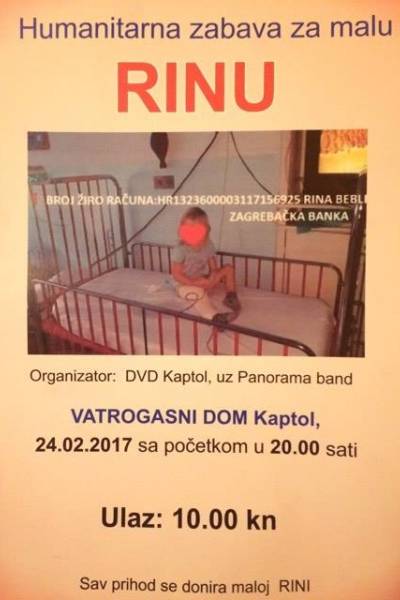 Za sve koji ne znaju, Rina je djevojčica iz Požege koja boluje od Edwingova sarkoma i već se neko vrijemo s majkom nalazi u Zagrebu na liječenju. Ako niste u mogućnosti sudjelovati na jednoj od humanitarnih zabava, za malenu Rinu možete uplatiti financijsku pomoć na broj bankovnog računa ispisanog na fotografiji ispod.![]()