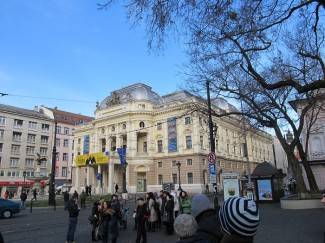 Slovačko narodno kazalište ili Slovenské národné divaldo neobarokna je zgrada koja se nalazi na Hviezdoslavom trgu. Zgradu su konstruirali arhitekti Ferdinand Fellner i Hermann Helmer koji su odgovorni i za zgrade Hrvatskog narodnog kazališta u Zagrebu i Rijeci. Njihov neorenesansni stil gradnje bio je velika promjena nakon klasičnog stila kojim su do tada bila građena kazališta. Danas se ovdje nalazi Slovačka opera i Nacionalni balet. Ispred kazališta se nalazi Ganimedova fontana koja prikazuje otmicu Ganimeda i njegov odlazak na Olimp. Ganimed je u grčkoj mitologiji bio najljepši smrtnik. Legenda kaže kako je Ganimed u Frigiji, na brdu Idi, čuvao ovce. Zapazio ga je Zeus i odmah se zaljubio u njega. Poslao je orla po njega ili je sam uzeo obličje orla, ovisno o inačicama priče, te ga donio na Olimp gdje je točio vino bogovima.