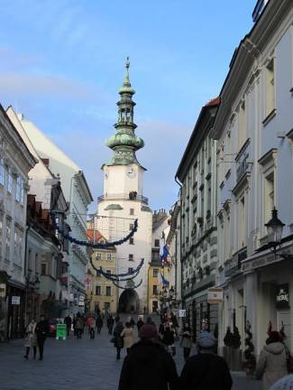 Novi most svakodnevno podstavlja svoja leđa pod tisuće automobila, on je spona između istočne i zapadne obale Dunava. Istočna sa svojim povijesnim sadržajima staroga grada i zapadna zvana Petržalka, sa svojim poslovnim zgradama i stambenim blokovima, glavna su središta kulturno poslovnog života Bratislave. Petržalku sam nekoliko minuta promatrao s dvorca i nije me ništa u daljini toliko zaintrigiralo da bih se uputio u tome smjeru, tako da sam se spustio u povijesnu jezgru. U grad su cijeli dan pristizali puni autobusi turista koji su upravo ovaj grad odabrali za doček bajne Nove godine. Kada se radi o proslavi Nove godine, Bratislava staje uz bok mnogih većih europskih prijestolnica. Grad je poznat i kao središte jeftine prostitucije i prihvatljivih eskort djevojaka. Kao takav zanimljiva je destinacija napaljenih „patuljaka“ razvijenih zemalja koji u ovome gradu traže svoju Snjeguljicu za slobodno vrijeme.