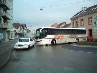 Ova situacija je dosta česta u kružnom toku na raskrižju Njemačke i Dubrovačke ulice. Vozači nerijetko znaju parkirati "samo da skočim u trgovinu, odmah se vraćam". Vozač autobusa sigurno nije bio oduševljen. (M.N.)