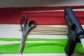 - krep papir, boja crvena i zelena (naravno, možete napraviti i bijele, žute...)