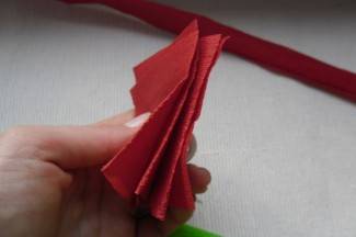 Krep papir crveni izrežemo na traku cca 30x5 cm. Ispreklapamo ga cik-cak pa će na kraju složen imati oblik kvadrata.