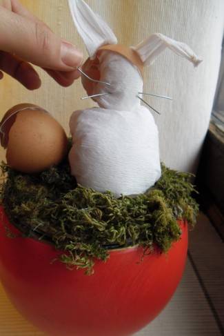 Na glavu našega zeke zalijepimo ljusku jajeta, koju smo oprali i prebrisali papirom.