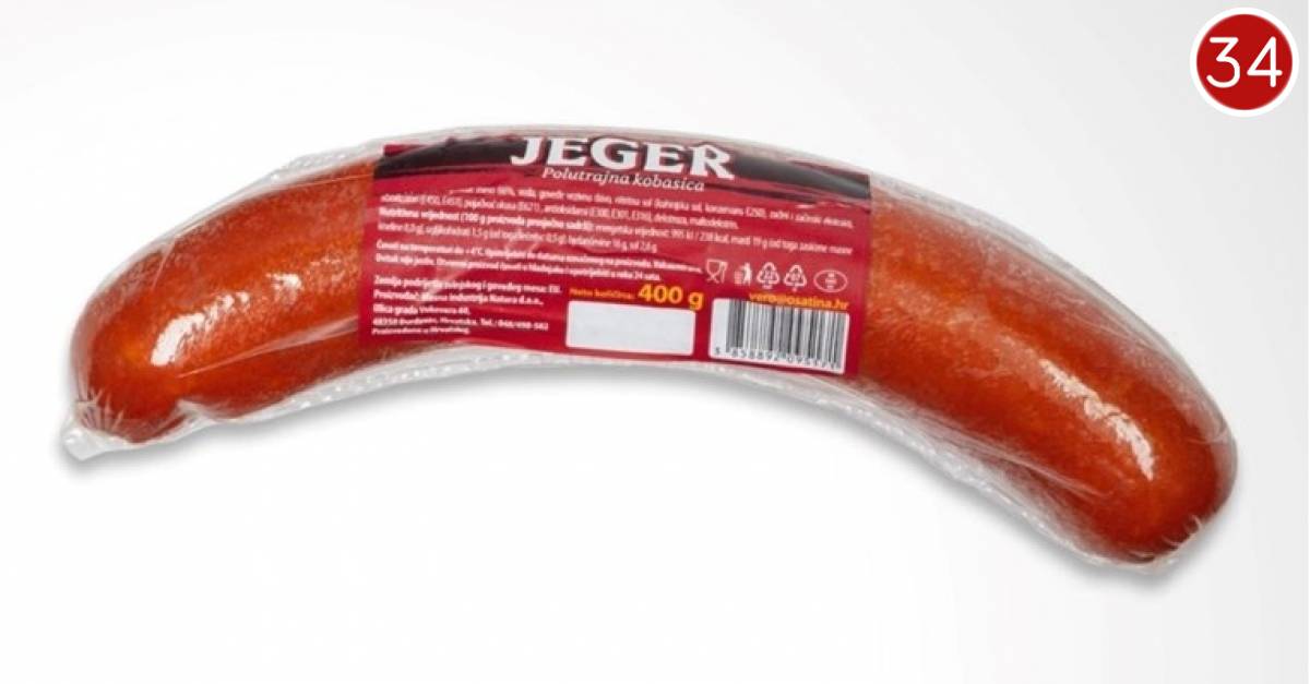 S tržišta se povlači JEGER - polutrajna kobasica 400 g koji ima LOT 24003316, upotrijebiti do 24.11.2024.
