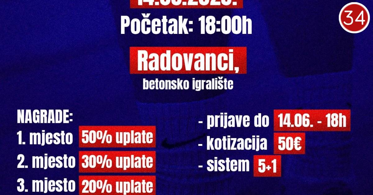 Započeli su mali turniri diljem naše Požeštine, a jedan takav održat će se ovoga vikenda. Naime, Malonogometni klub »Papuk« Velika u subotu, 14. lipnja organizira prvo izdanje turnira u malome nogometu. Malonogometaši će se okupiti na betonskome igralištu u Radovancima od 18 sati kada i započinje odigravanje utakmica.