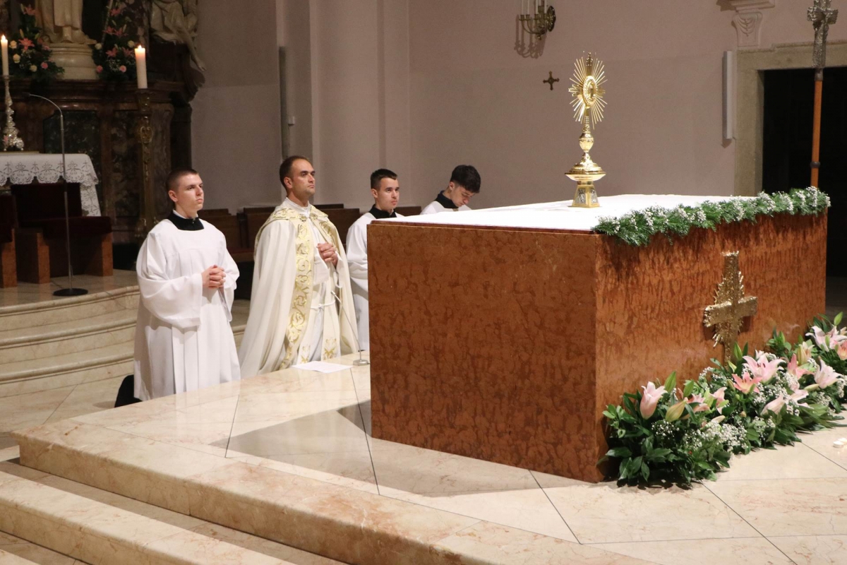 Prije Marijina hvalospjeva „Veliča duša moja Gospodina“ biskup Ivo je izložio na čašćenje relikviju sv. Terezije, a sva katedralna zvona oglasila su početak svetkovine u njezinu čast. Na svršetku Večernjih hvala biskup je pozvao sudionike na sutrašnje središnje slavlje svetkovine sv. Terezije, koje će predvoditi vrhbosanski nadbiskup i metropolit Tomo Vukšić u zajedništvu s biskupima Đakovačko-osječke crkvene pokrajine. Zamolio je sv. Tereziju neka prati svakoga od njih, da u njima pobjeđuje Isusova snaga, te je na sve zazvao Božji blagoslov.