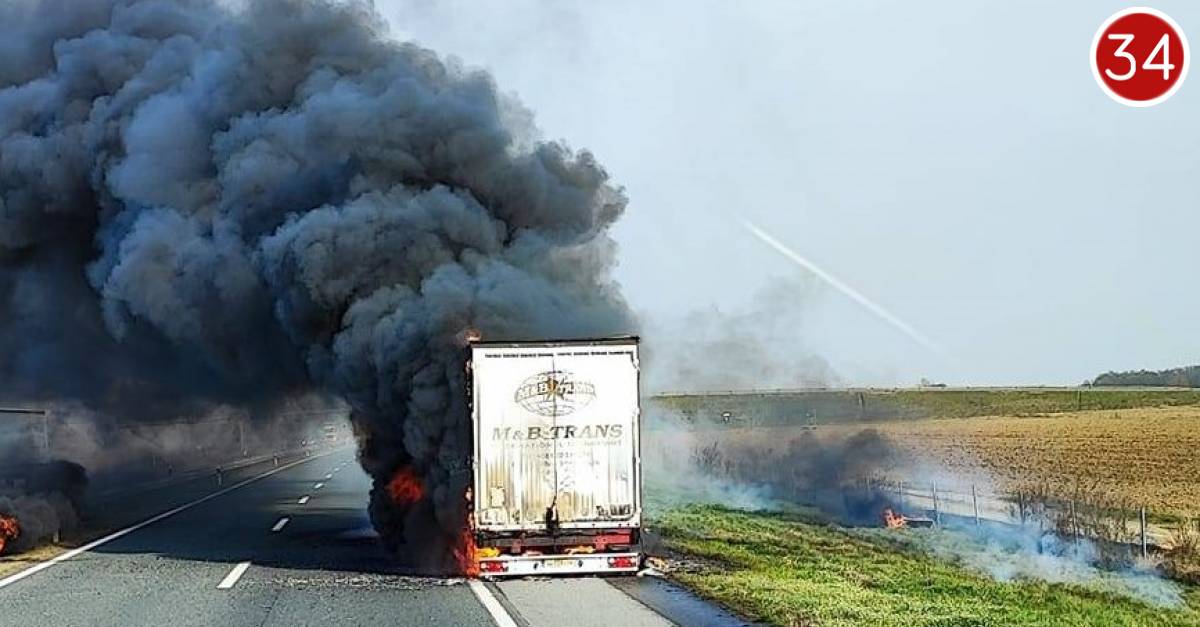 Prema prvim informacijama, teretno vozilo zapalilo se u vožnji. Požar na teretnom vozilu je ugašen, a na srećuozlijeđenih osoba nema.