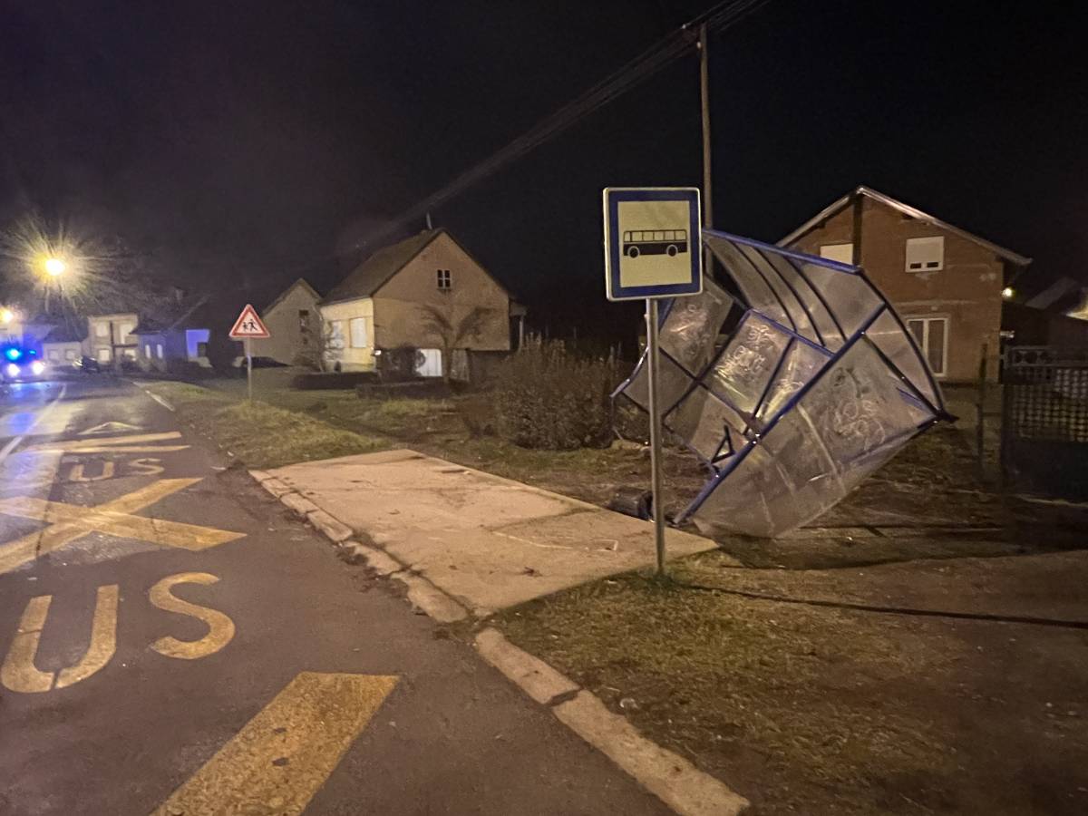 Večeras oko 22:45 sati u Požegi u Frankopanskoj ulici došlo je do slijetanja najvjerojatnije osobnog automobila koji je od siline udarca "pokosio" autobusnu stanicu.