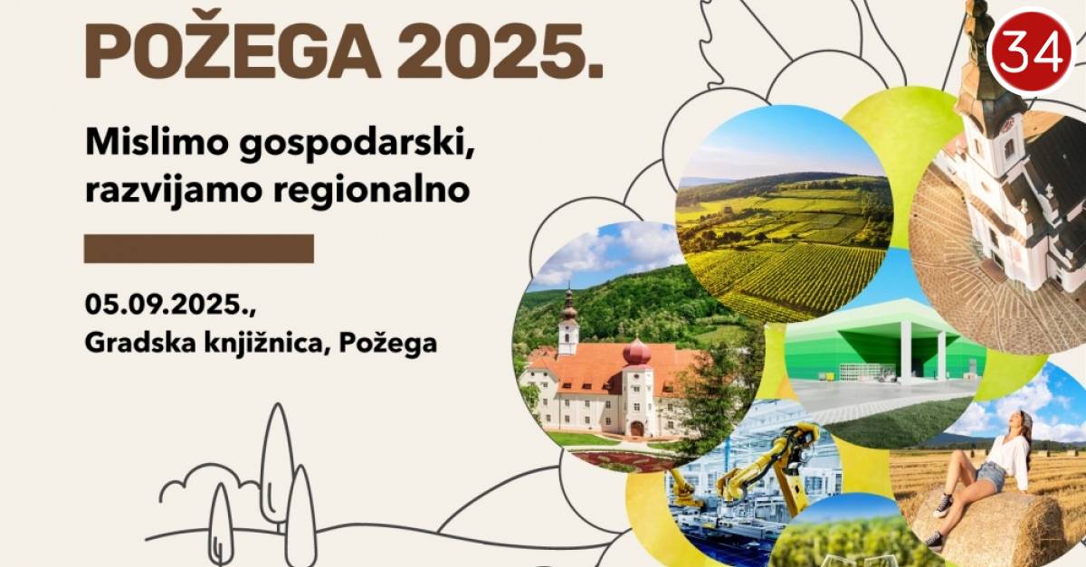 HGK Županijska komora Požega u suradnji sa Sektorom za industriju i održivi razvoj HGK i Požeško-slavonskom županijom organizira 3. Regionalnu konferenciju – Požega 2025 "Mislimo gospodarski, razvijamo regionalno".