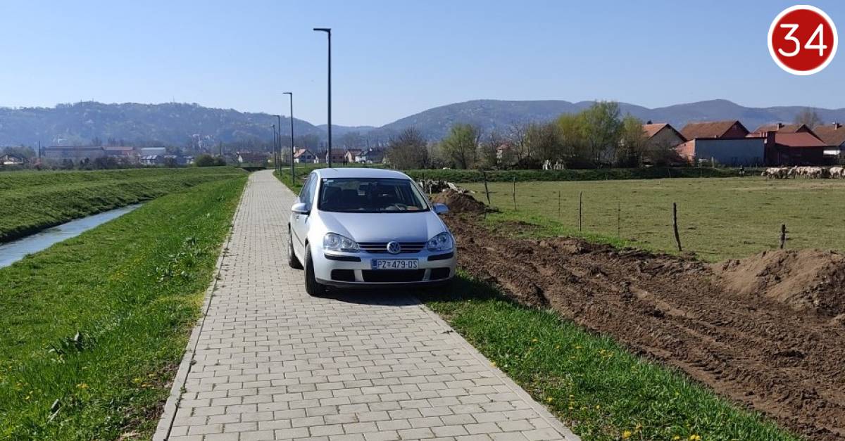 Priznajte da ovakvo parkiranje u Požegi još niste vidjeli! Čitatelj nam je poslao prizor koji nas pomalo zbunjuje... automobil parkiran na šetnici uz Veličanku u Požegi. Zašto? Kako? Evo, ne znamo.