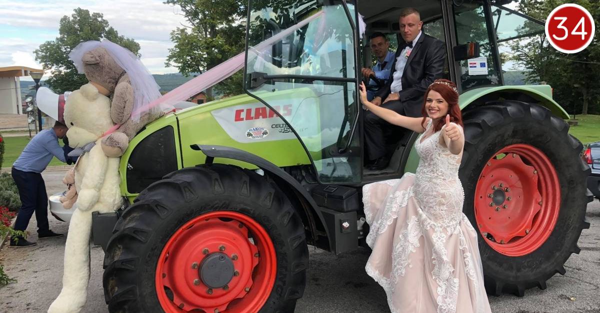 Mladenkin prijevoz do crkve je bio traktor okićen plišenom medvjeđom obitelji, a mladenci su se i nakon vjenčanja, prvi put kao supružnici, provozali u njemu.
