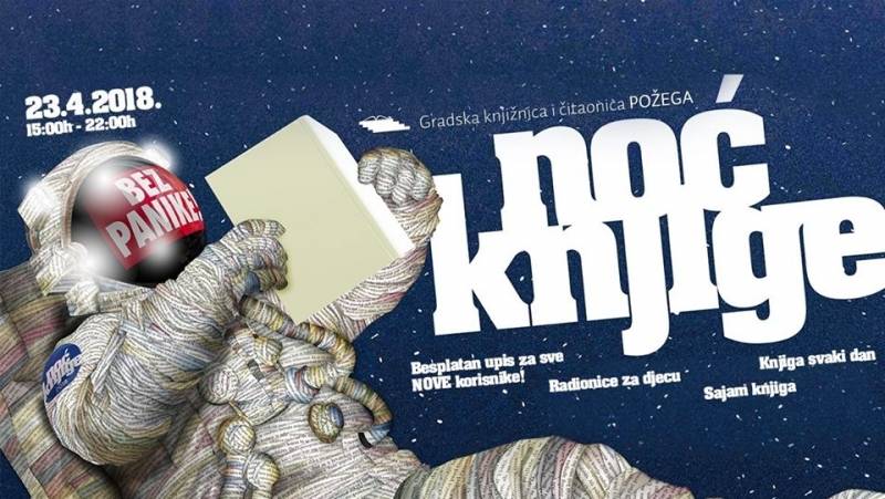 Noć knjige danas se obilježava na nacionalnoj i svjetskoj razini, a u požeškoj Noći knjige od 15,00 do 22,00 sata program nudi besplatan upis u knjižnicu, mogućnost sudjelovanja u razvoju planova za program nove knjižnice te niz zbivanja za djecu i odrasle.