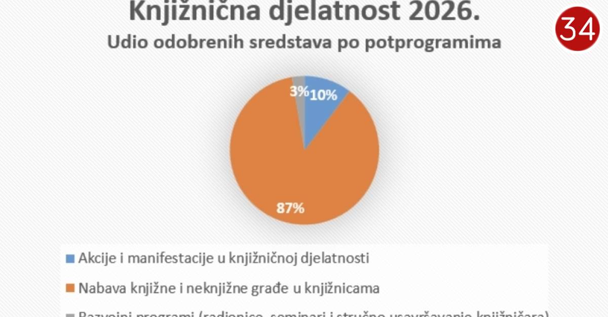 Sufinanciranje je predloženo za potprogramska područja: akcije i manifestacije u knjižničnoj djelatnosti - 280 programa s iznosom od 344 tisuće eura, razvojni programi u knjižničnoj djelatnosti - 38 programa s iznosom od 89,8 tisuća eura, te nabavu knjižne i neknjižne građe - 234 programa s iznosom od 2,8 milijuna eura.
