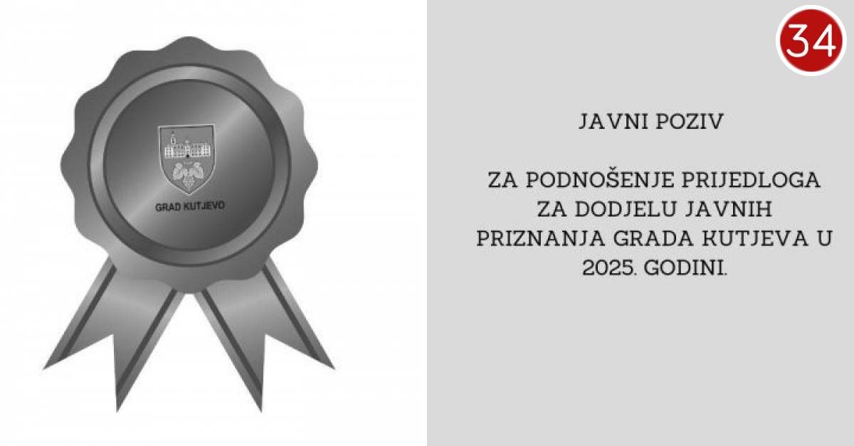 Objavljen je Javni poziv za davanje prijedloga za dodjelu javnih priznanja Grada Kutjeva u 2025. godini. Građani, udruge, trgovačka društva, ustanove i druge pravne osobe mogu ih Gradu Kutjevu uputiti do 31. srpnja 2025., kada je posljednji dan za predlaganje.