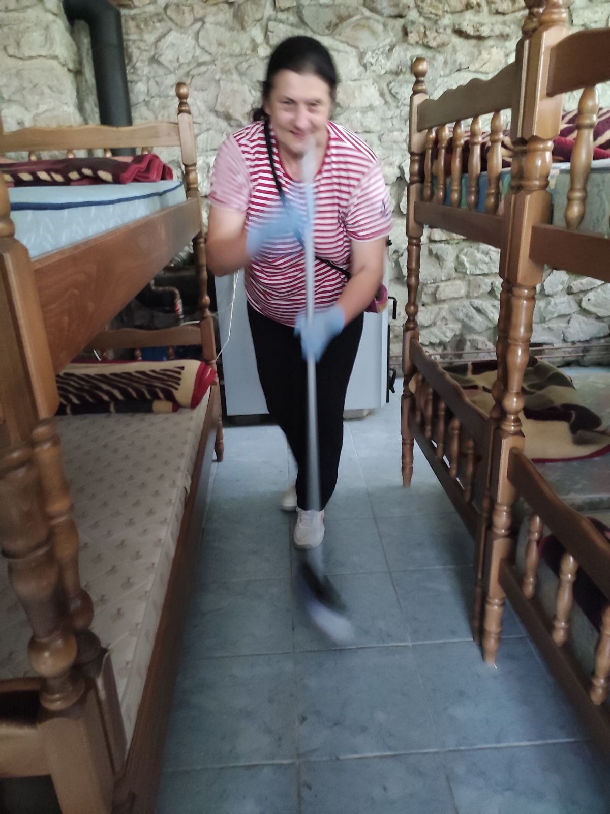 Nakon jutarnje kava i podjele poslova vrijedna planinarska družina krenula je u akciju. Jedan tim je uređivao unutarnji dio doma od velike i male sale pa sve do sanitarnih čvorova dok se drugi dio tima opredijelio za vanjsko uređivanje oko doma. Navedeno je bilo najveći zalogaj jer je bilo potrebno trimerima te ručno pokositi sve oko doma pa sve do rampe koja je oko 100 metara od samoga objekta. Vrijedni članovi očistili su od smeća cijeli prostor.
