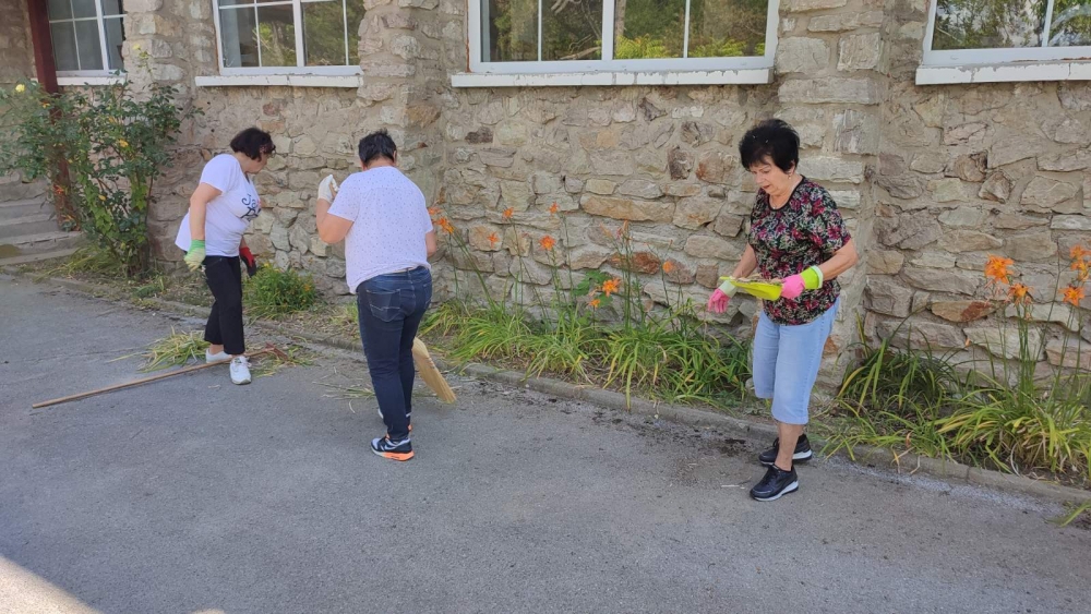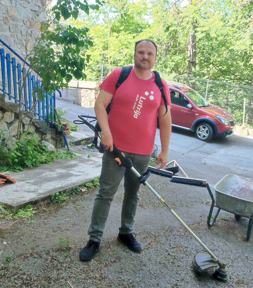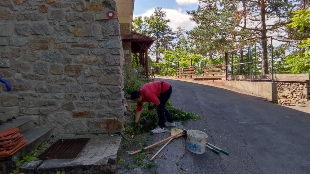 Vanjski dio doma temeljito je očišćen i uređen. Cvjetnjaci su obnovljeni, prilaz domu očišćen od korova i granja, a zelene površine pokošene trimerima. Posebna pažnja posvećena je detaljima – svaki kutak okućnice doveden je u red, čime je dom dobio uredan i gostoljubiv izgled.