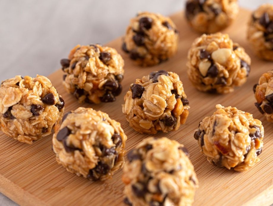 U zdjeli pomiješajte maslac od kikirikija, javorov sirup, kokosovo ulje, vaniliju i sol. Dodajte zobene pahuljice i komadiće čokolade pa promiješajte.