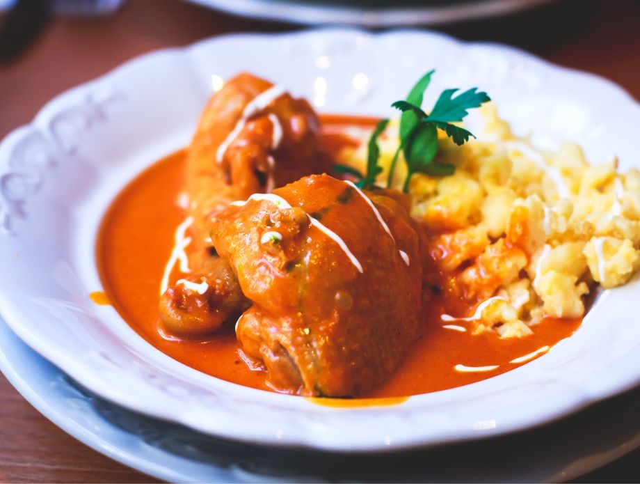 Mađarski paprikaš se tradicionalno poslužuje uz noklice (mađarski nokedli) te uz kremastu salatu na bazi krastavaca po imenu uborka.