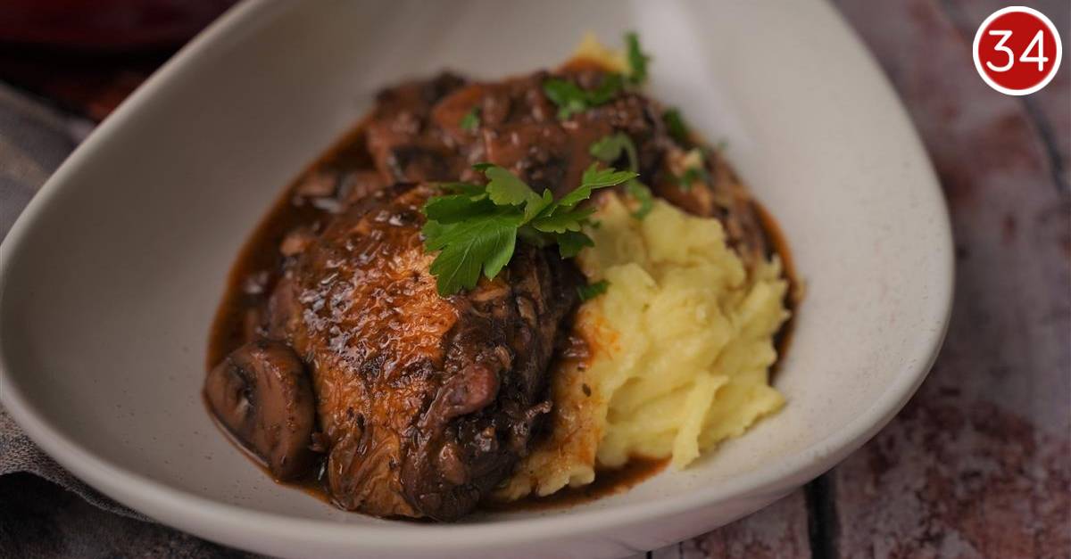 Ovaj francuski klasik jednostavan je za pripremiti, a savršen uz kremasti pire ili hrskavi kruh. Piletina se krčka, u umaku na slabijoj vatri, kako bi bila mekana i kako bi se okusi sjedinili.