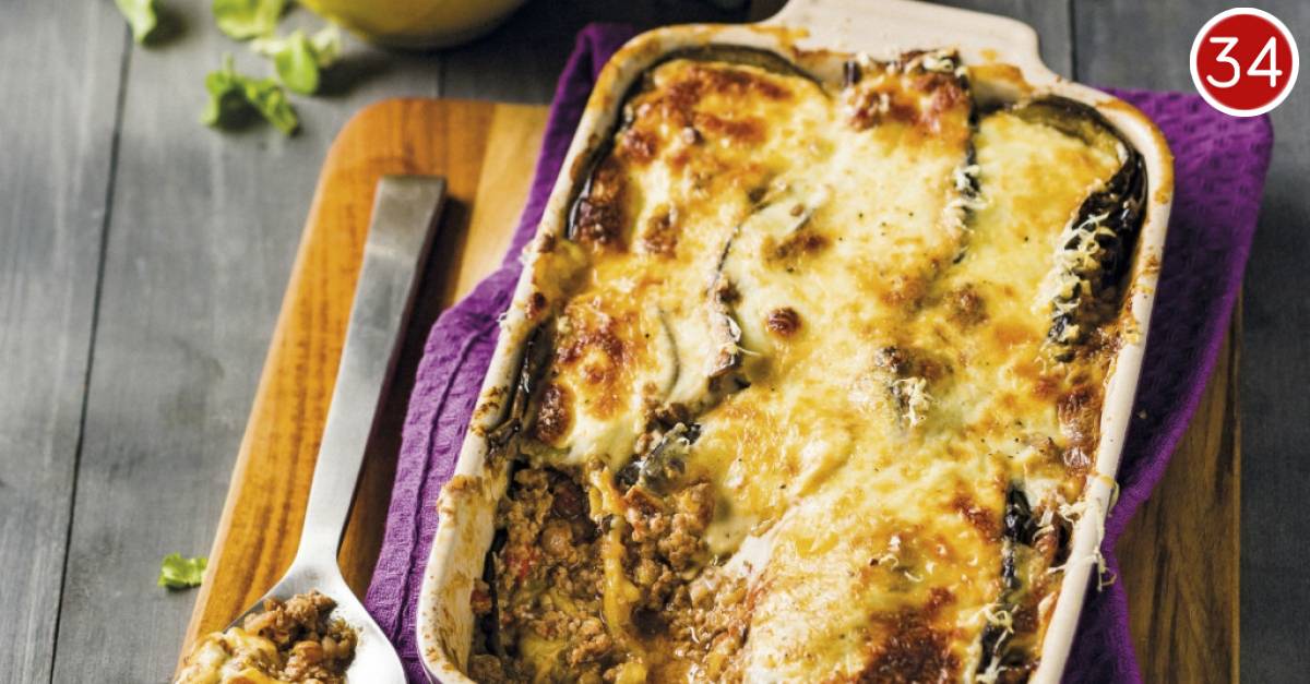 Umjesto krumpira Grci koriste kriške patlidžana, a od mljevenog mesa svinje i junca draža im je janjetina i/ili kozletina. U prvom je planu umak od rajčice i mljevenog mesa, ali i bešamel koji daje sočnost cijelom jelu.