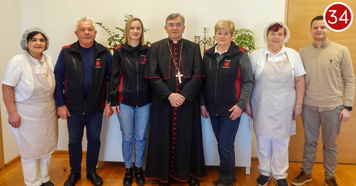 Zahvaljujući na pozdravnim riječima dobrodošlice, biskup je zahvalio vodstvu Caritasa na čelu s ravnateljicom, tajnikom i volonterima za požrtvovnost kojom pomažu ljudima u potrebi, te je njima i njihovim obiteljima zaželio sretan Božić. Svratio je potom u Caritasovu kuhinju koja svakodnevno pripravlja tople obroke za 70-ak osoba i organizirano ih razvozi u domove onih koji si ih sami ne mogu osigurati. Biskup je zahvalio djelatnicima Kuhinje za vjerno služenje siromašnima i nemoćnima te je njima i obiteljima čestitao Božić. Nakon toga biskup je u pratnji ravnateljice i tajnika Caritasa i svog osobnog tajnika posjetio jednu siromašnu obitelj i čestitao im nadolazeće blagdane.