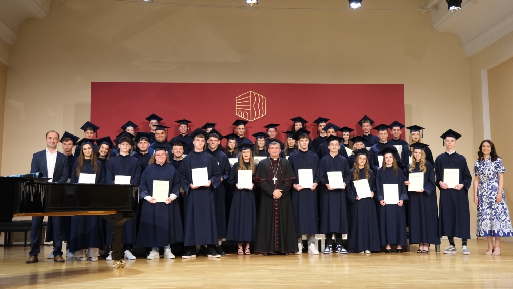 Program koji je vodio gimnazijski profesor Miroslav Paulić, pripremili su razrednici maturantskih razreda Marija Tonković i Leonardo Đaković zajedno sa suradnicima dok je prigodnu molitvu predvodio vjeroučitelj i duhovnik škole Tomislav Dokoza. Prisutne je na početku pozdravio ravnatelj Bedeničić koji je između ostalog kazao maturantima kako su završili jednu dionicu svoga života te se sada nalaze pred novim izazovima. Potaknuo ih je da im Stvoritelj bude čvrsti temelj budućih radosti i snažan oslonac u životnim teškoćama. Uputio je riječi zahvale biskupu Ivi Martinoviću, kao i predstojniku ureda za katoličke škole Ivici Žuljeviću na realiziranoj viziji katoličkih škola, utemeljenoj na čvrstim katoličkim i općeljudskim vrijednostima.
