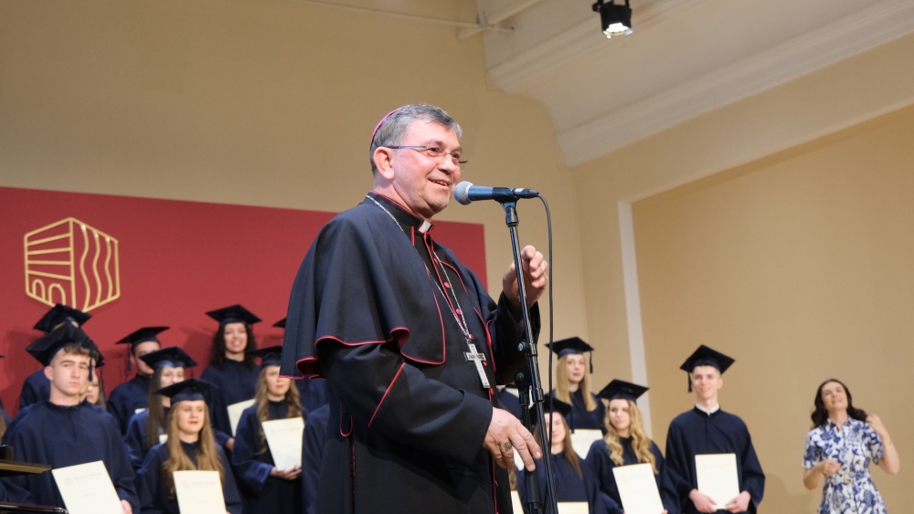 Prisutnima je pastirsku riječ uputio požeški biskup Ivo Martinović. Zahvalivši ravnateljuna njegovim riječima, biskup Ivo uputio je nekoliko poruka o važnosti života, uloge Katoličke gimnazije i duhovnog života, osobne odgovornosti u životu i zahvalnosti, na ljubav prema Bogu i roditeljima. Govoreći o završetku srednjoškolskog obrazovanja, naglasio je da završetak škole označava korak prema zrelosti, ali da je uz to učenje važan i osobni rast koji traje cijeloga života.