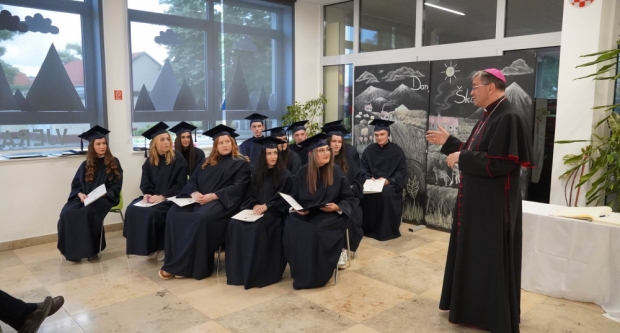 Na kraju je zahvalio roditeljima, nastavnicima i školskom osoblju na njihovom trudu i ulozi u obrazovanju učenika, poručivši: „Ne zaboravite ni ovu školu, ni profesore, ni ravnatelja jer oni su svojim znanjem nastojali obogatiti vaše živote. Neka vas sve prati Božji blagoslov i vodi prema budućnosti koju ćete imati i izgradiđivati.“