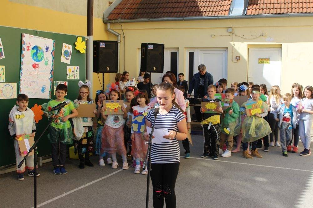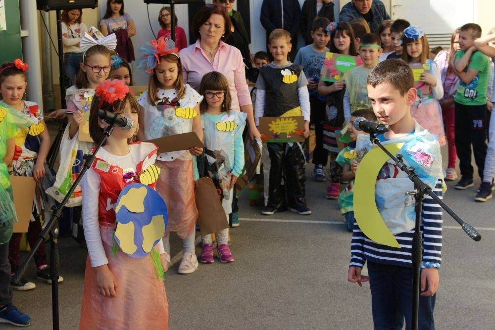 U povodu Dana planeta Zemlje OŠ Antuna Kanižlića pripremila je priredbu i modnu reviju odjeće od recikliranih materijala koju su danas prezentirali učenici.