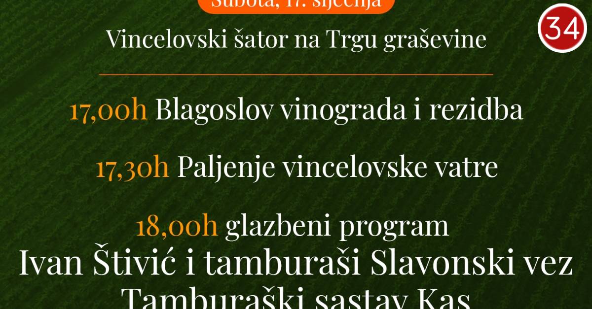 Kutjevo će i ove godine, uz mirise vinograda i toplinu zajedništva, proslaviti blagdan sv. Vinka – Vincelovo. Trg graševine ponovno će postati mjesto susreta vinara, prijatelja i svih zaljubljenika u vino, tradiciju i dobru atmosferu, u manifestaciji koja već generacijama simbolično označava početak nove vinogradarske godine.
